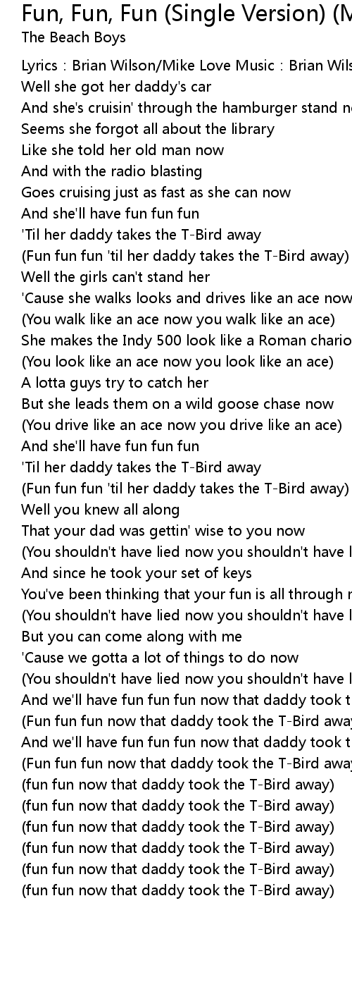 | (Fun fun fun 'til her daddy takes the T-Bird away) | |