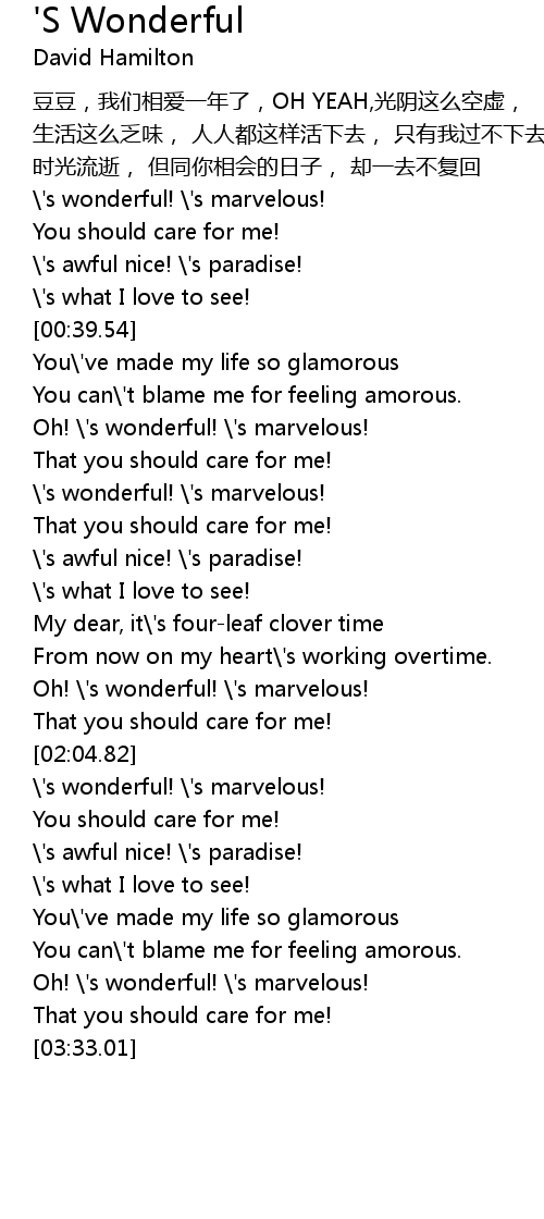 | [00:11.86] | ' s wonderful! ' s marvelous! |