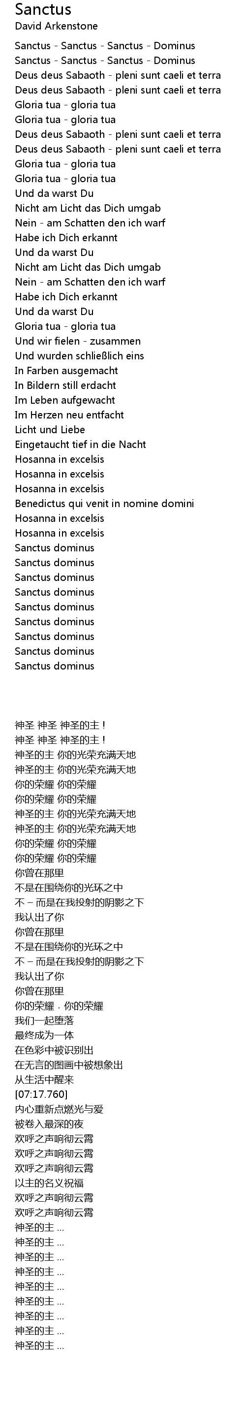 | [09:30.410] | Hosanna in excelsis |
