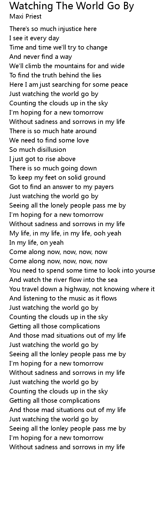 Seeing all the lonley people pass me by |