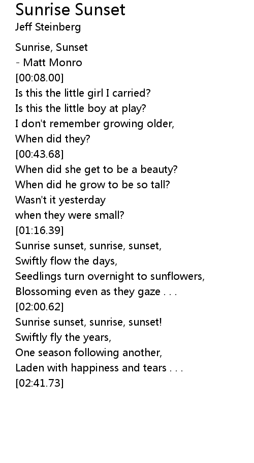 Sunrise sunset, sunrise, sunset, |