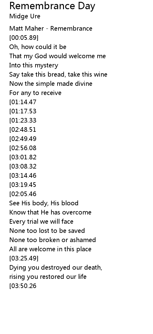 | [00:01.12] | Matt Maher - Remembrance |