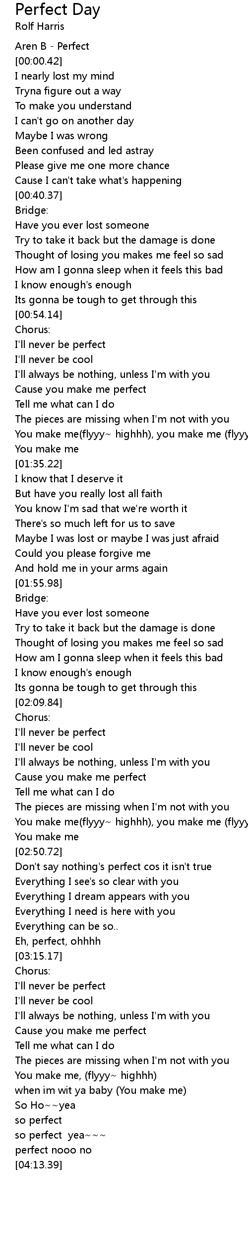 Don't say nothing's perfect cos it isn't true |