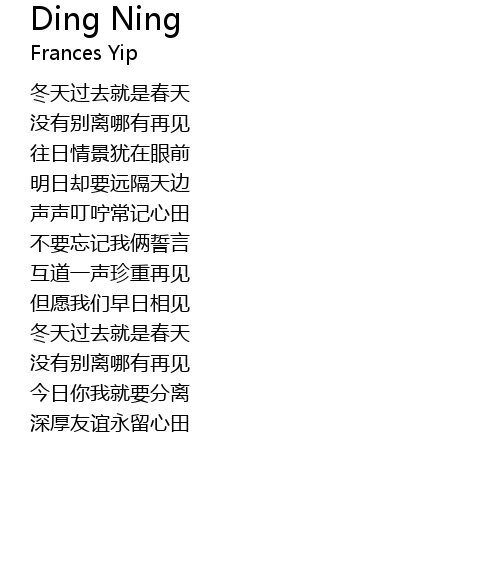 | [00:33.54] | shēng shēng dīng níng cháng jì xīn tián |