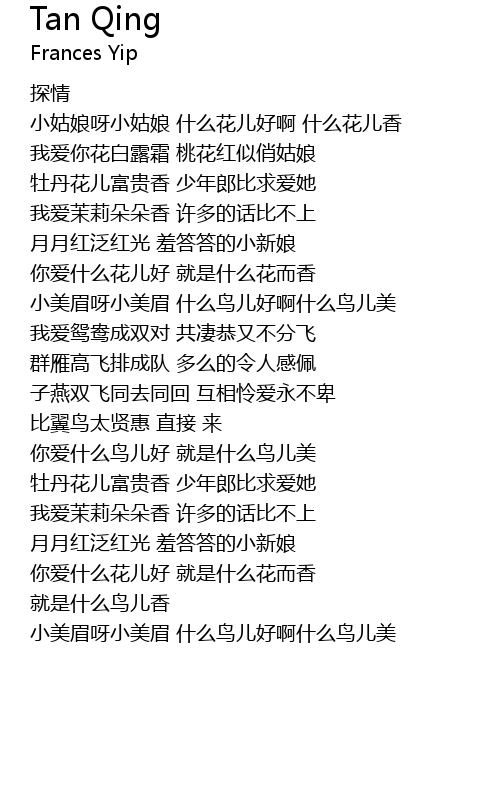 | 歌曲 | Tan Qing |