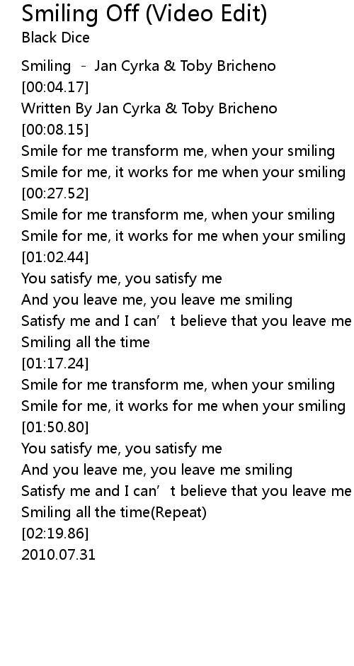 | [00:56.20] | Smile for me, it works for me when your smiling |