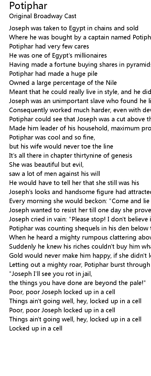 Potiphar could see that Joseph was a cut above the av'rage, |