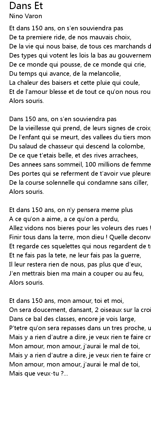 Et dans 150 ans, mon amour, toi et moi, |