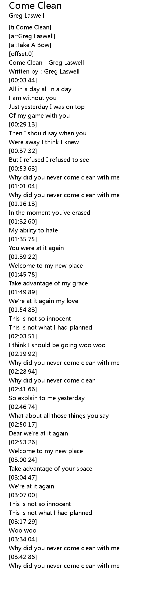 | ti: Come Clean | |