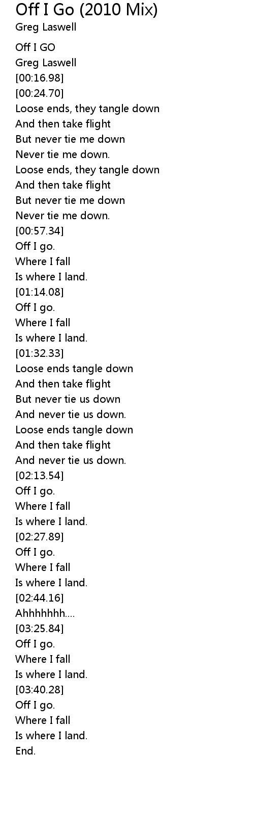 | [00:36.65] | But never tie me down |