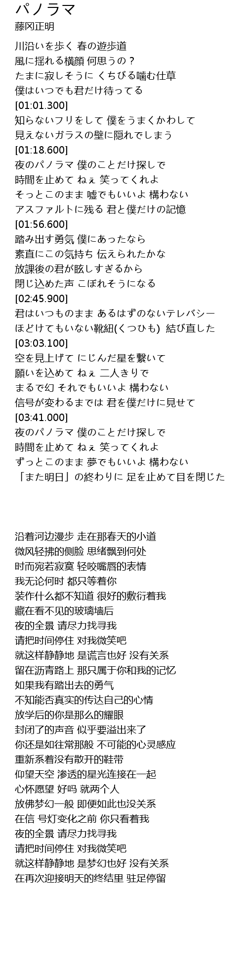 | [03:43.700] | 夜のパノラマ 僕のことだけ探しで |