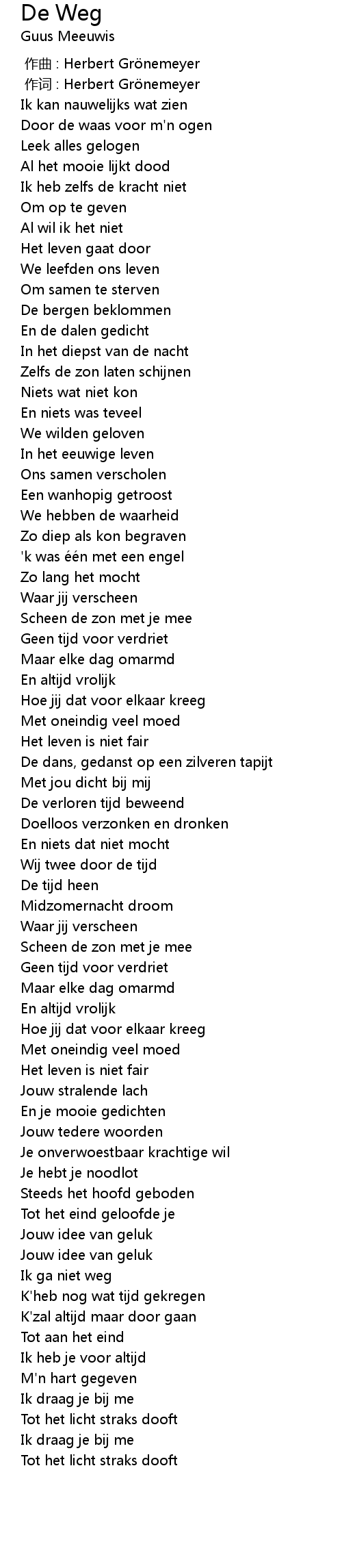 | [02:06.45] | De dans, gedanst op een zilveren tapijt |