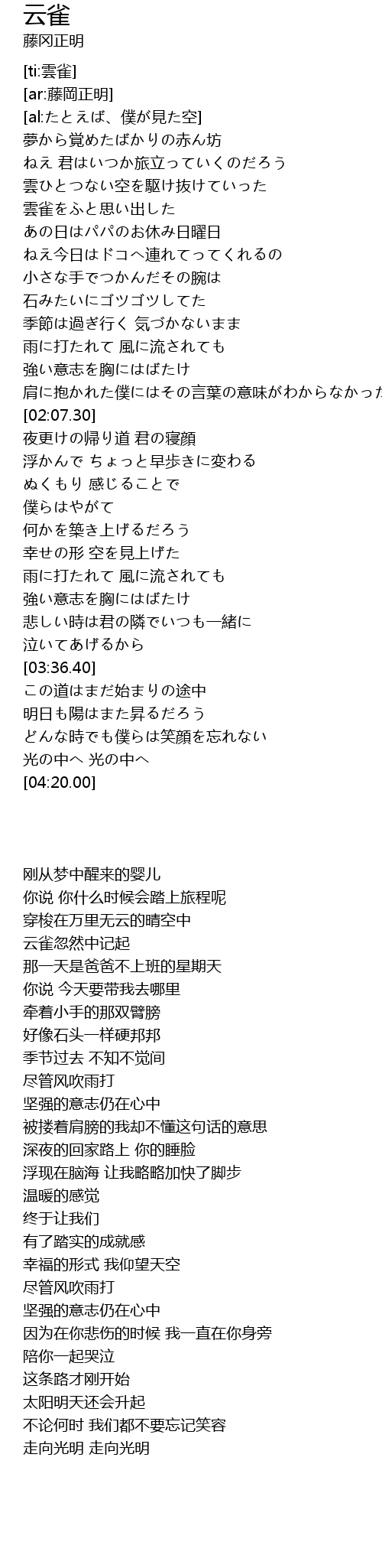 | [03:16.50] | 強い意志を胸にはばたけ |