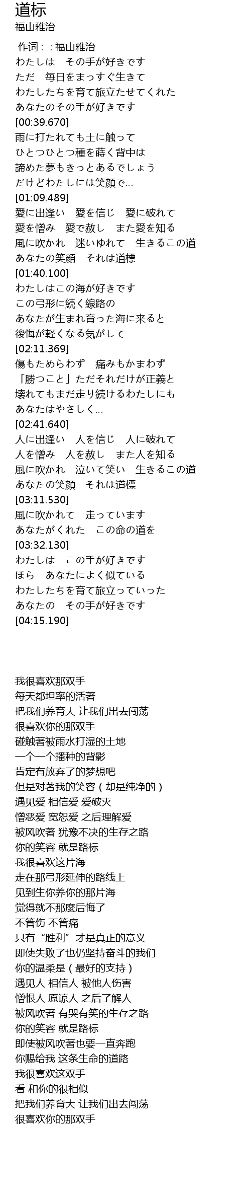 | [02:59.189] | 風に吹かれ 泣いて笑い 生きるこの道 |