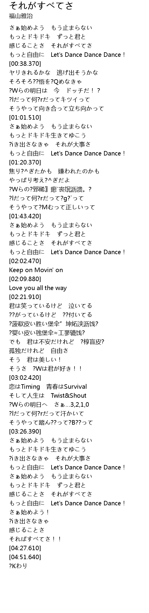 | [04:03.550] | もっと自由に Let's Dance Dance Dance! |