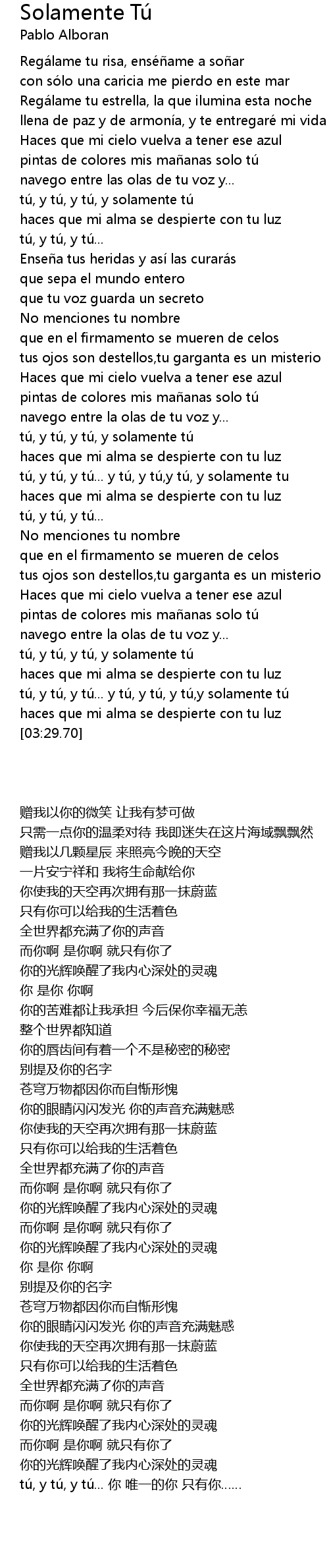 | [03:29.70] | tú, y tú, y tú... 你 唯一的你 只有你…… |
