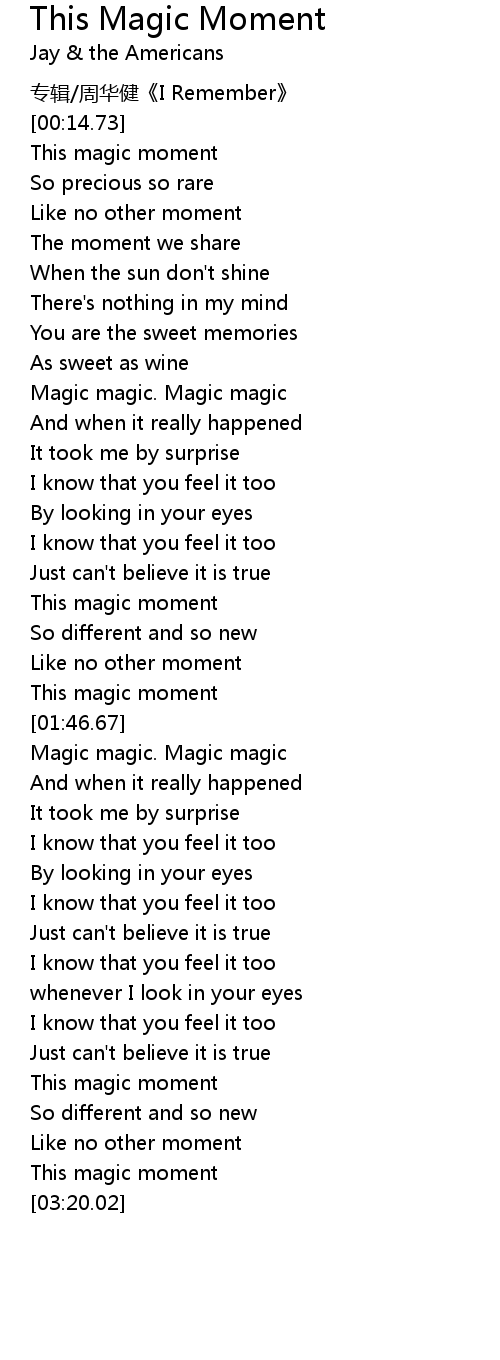 | [02:57.89] | This magic moment |
