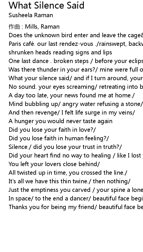 | 歌曲 | What Silence Said |