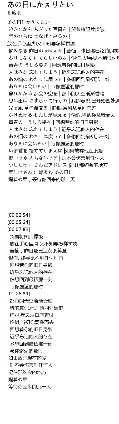 | [00:25.92] | | 放在手心里,却又不知要怎样拼凑…… |