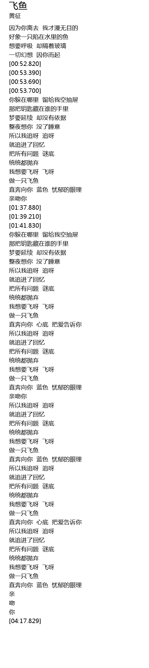 | [03:46.800] | 做一只飞鱼 |