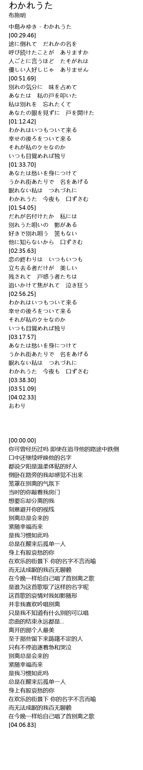 中島みゆき - わかれうた |