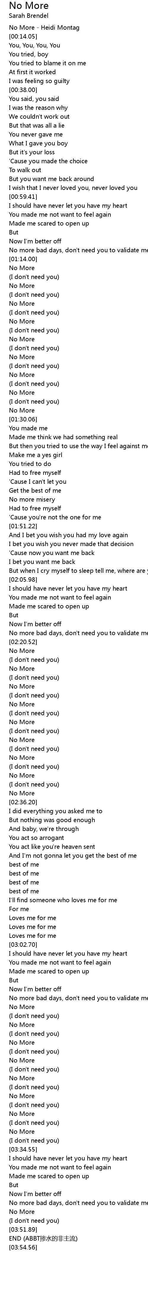 | [03:45.47] | No more bad days, don't need you to validate me |
