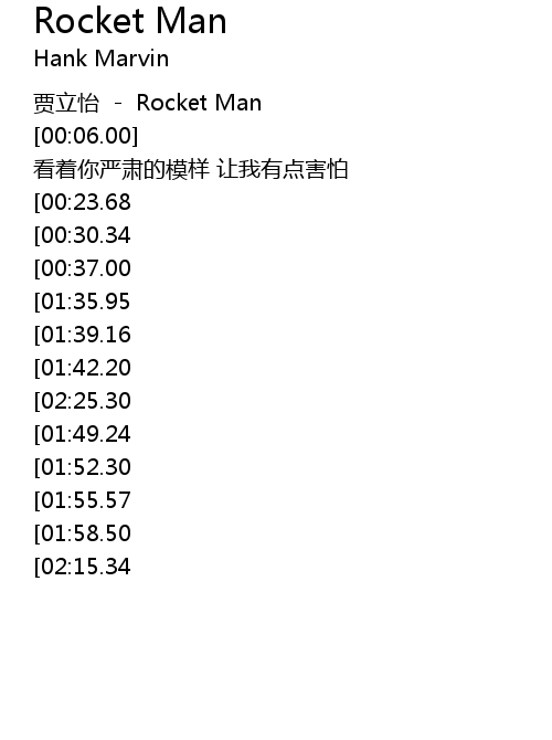 | [00:02.00] | 贾立怡 - Rocket Man |