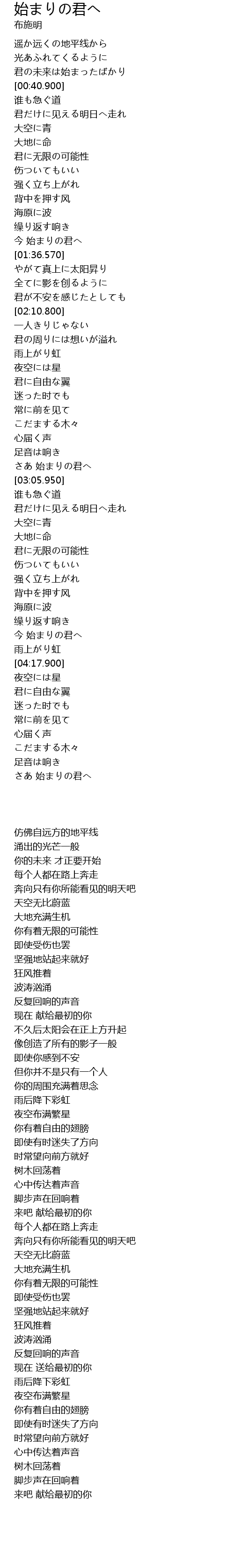 | [04:09.170] | 今 始まりの君へ |