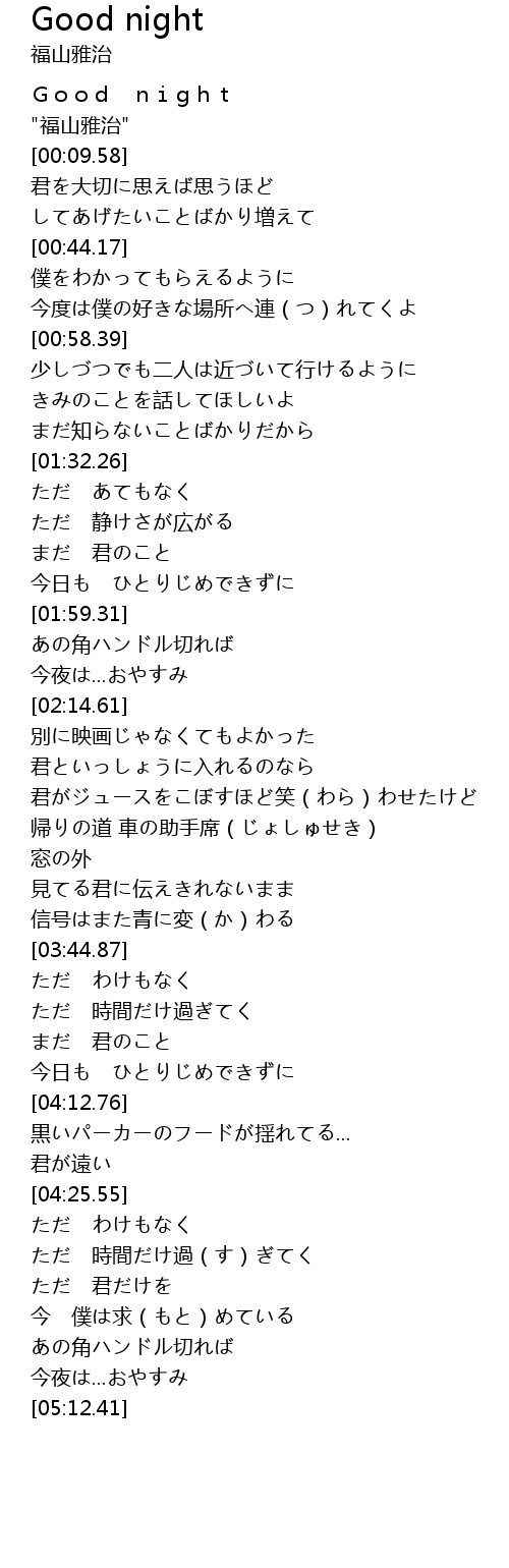 | [02:03.34] | 今夜は...おやすみ |