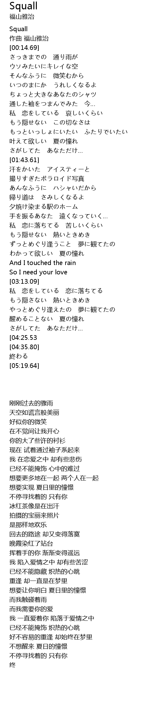 | [02:51.52] | わかって欲しい 夏の憧れ |