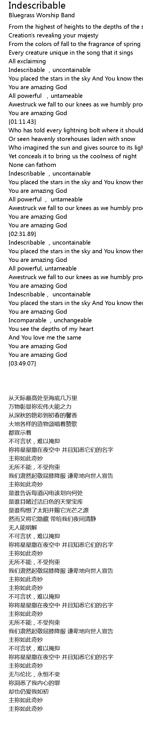 | [00:44.14] | You placed the stars in the sky And You know them by name |