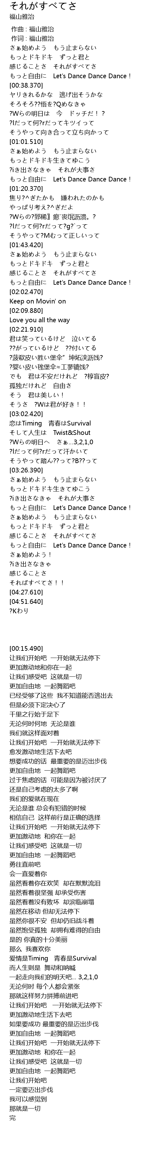 | [04:03.550] | もっと自由に Let's Dance Dance Dance! |