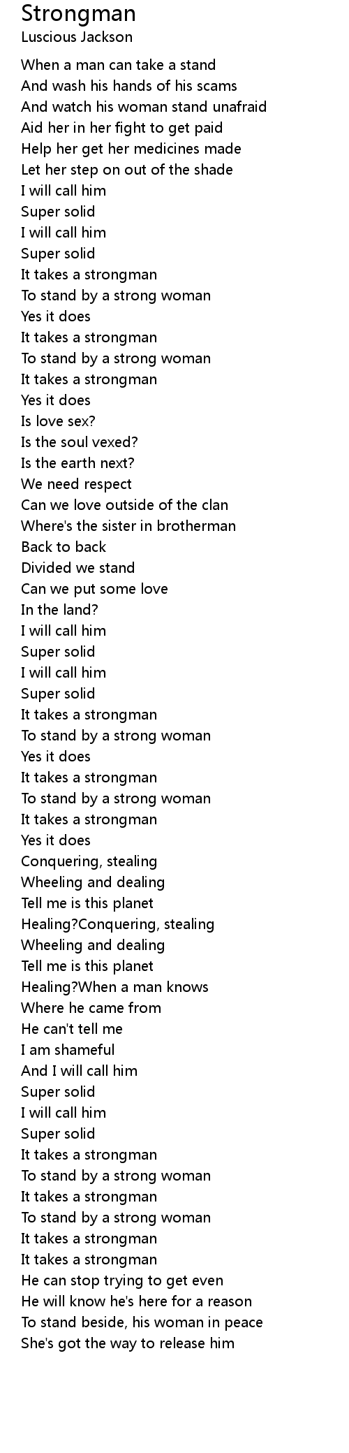 To stand by a strong woman