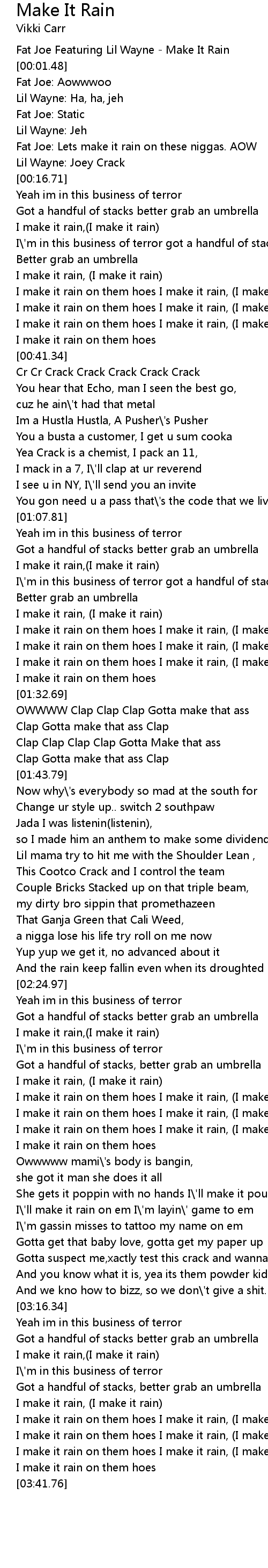 Fat Joe Featuring Lil Wayne - Make It Rain |