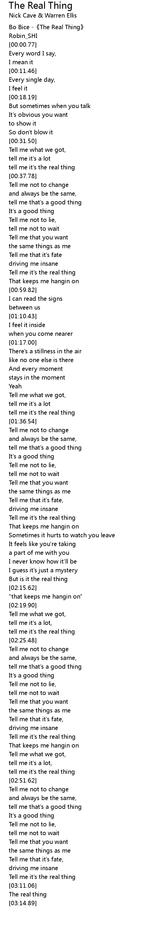| [00:-3.15] | Bo Bice -《The Real Thing》 |