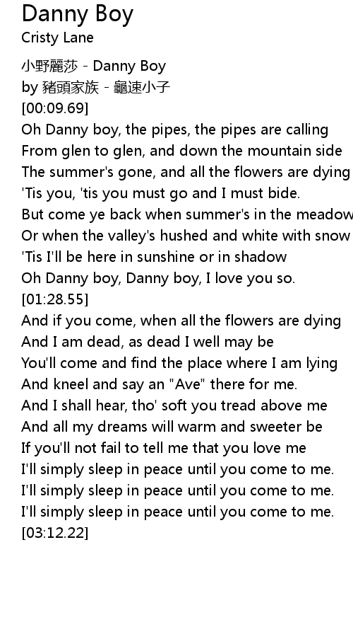 | [01:20.64] | Oh Danny boy, Danny boy, I love you so. |
