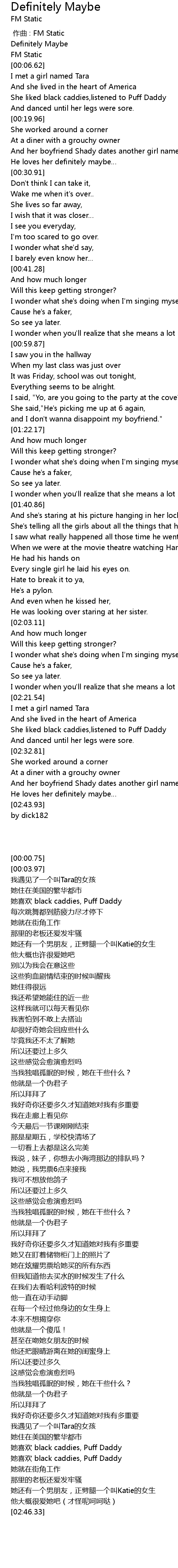 | [00:00.00] | zuo qu : FM Static |