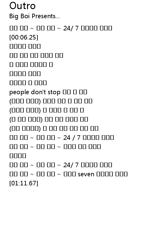 | [00:52.28] | 하루 종일 ~ 하루 종일 ~ 24 / 7 멜로디가 맴돌아 |