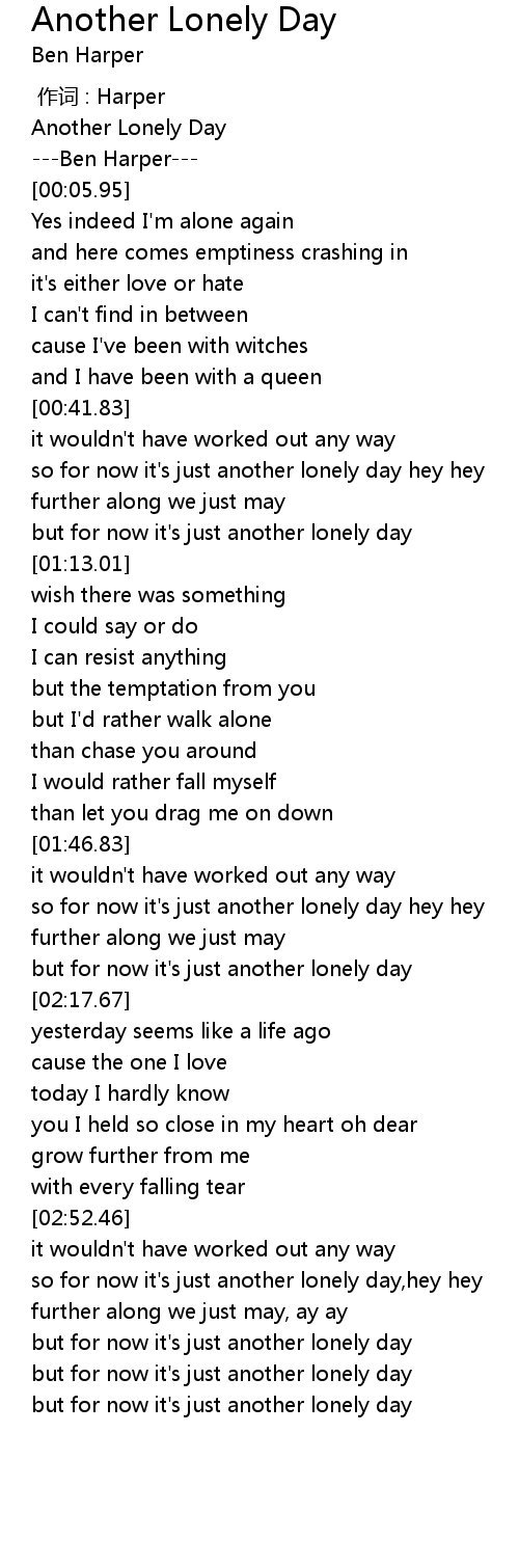 | [00:48.79] | so for now it's just another lonely day hey hey |