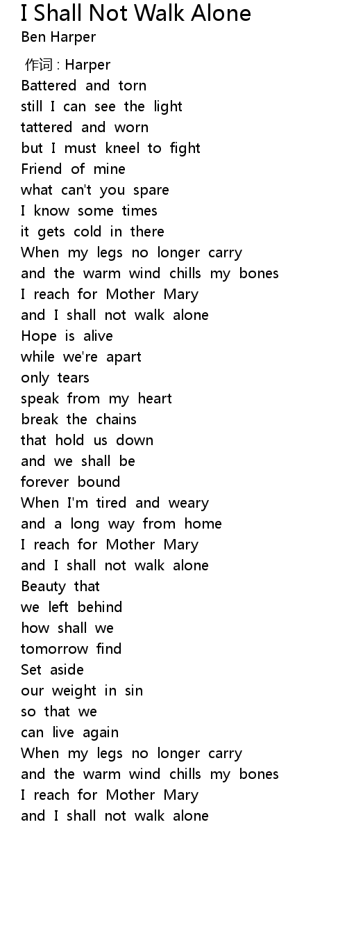 | 歌曲 | I Shall Not Walk Alone |