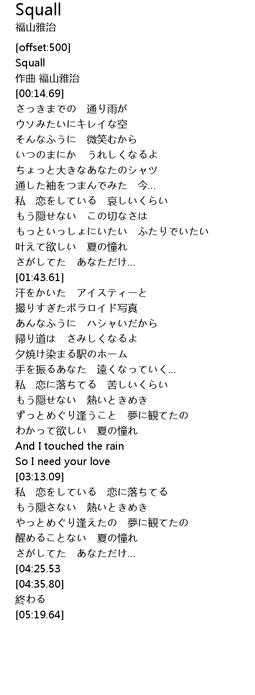 | [02:51.52] | わかって欲しい 夏の憧れ |