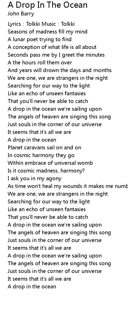 | A drop in the ocean we' re sailing upon | |