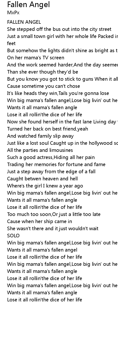 Win big mama's fallen angel,Lose big livin' out her lies |