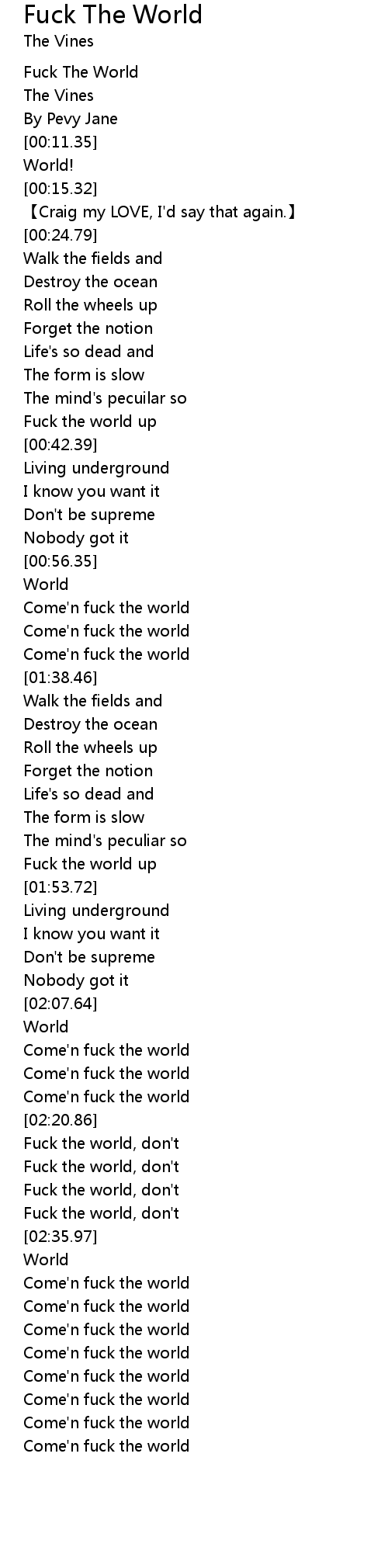 | [03:00.34] | Come' n fuck the world |