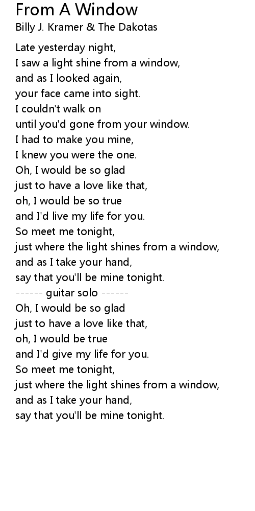 I saw a light shine from a window, |