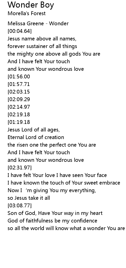 | [03:57.10][02:19.18][01:08.95] | what a wonder You are |
