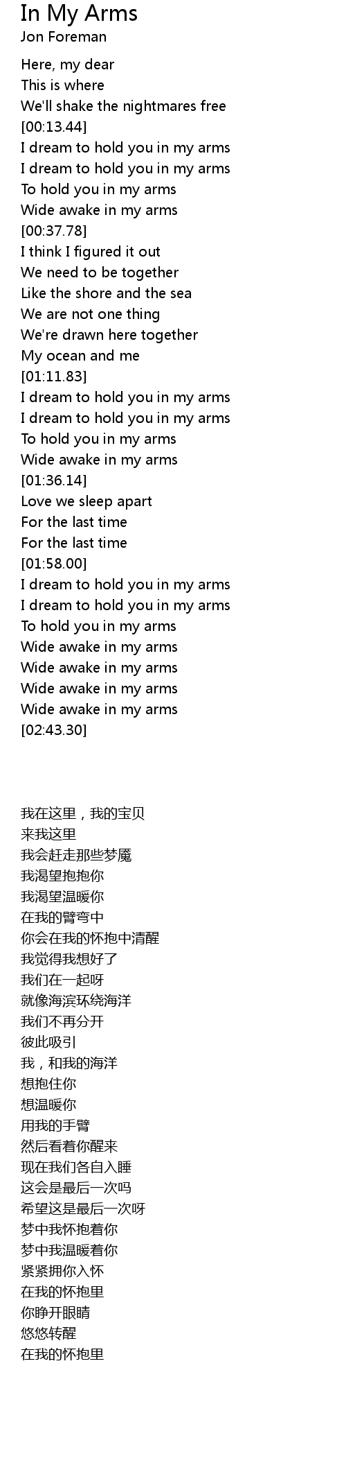 Wide awake in my arms |