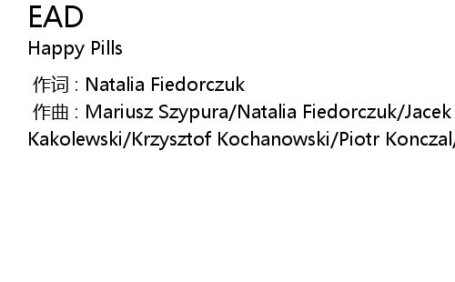 | [00:00.000] | 作曲 : Mariusz Szypura/Natalia Fiedorczuk/Jacek Kakolewski/Krzysztof Kochanowski/Piotr Konczal/Slawek Mizerkiewicz |