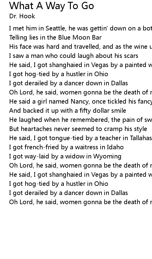 Oh Lord, he said, women gonna be the death of me but what a way to go |