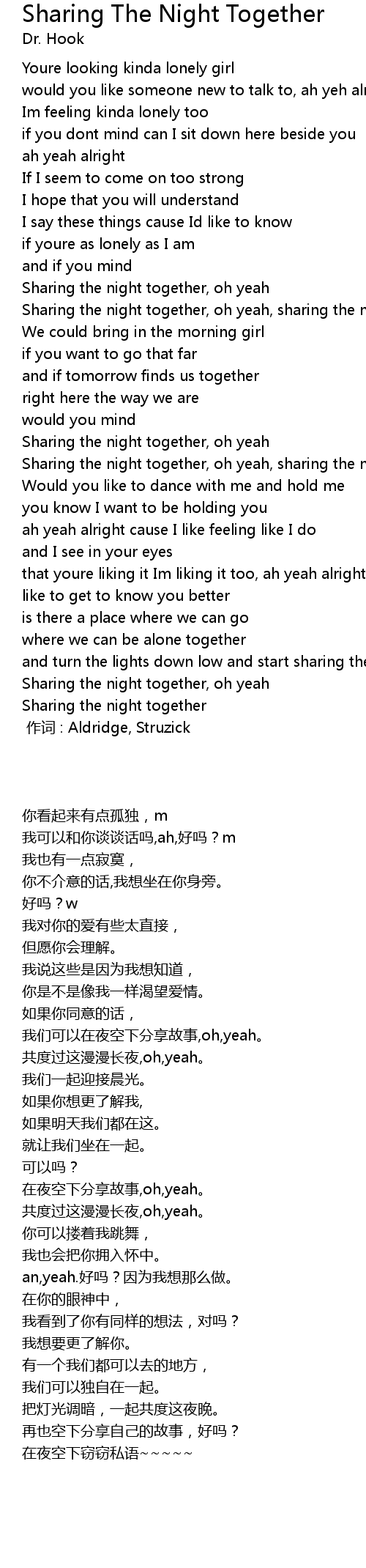 | [00:51] | Sharing the night together, oh yeah |